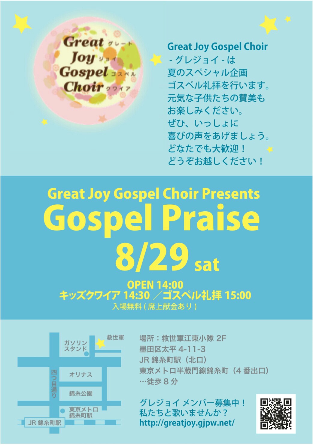 Gospel Praiseのメンバーをお招きして夏のゴスペル礼拝をします\(^o^)/
