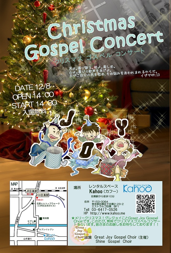 東京都墨田区で毎月第4土曜日14時30分~活動しているゴスペルサークルです。 無料体験・見学いつでも受付中~♪ great_joy_gc@yahoo.co.jp に御気軽にご連絡ください! facebookページ: https://m.facebook.com/GreatJoyGC/ Instagram: great_joy_gc