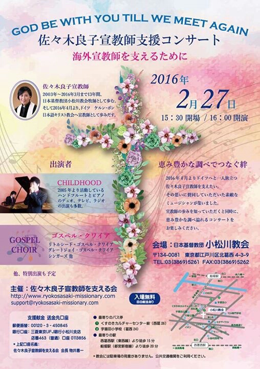 4月よりドイツの教会に赴任される小松川教会の牧師先生を支援するためのコンサート。