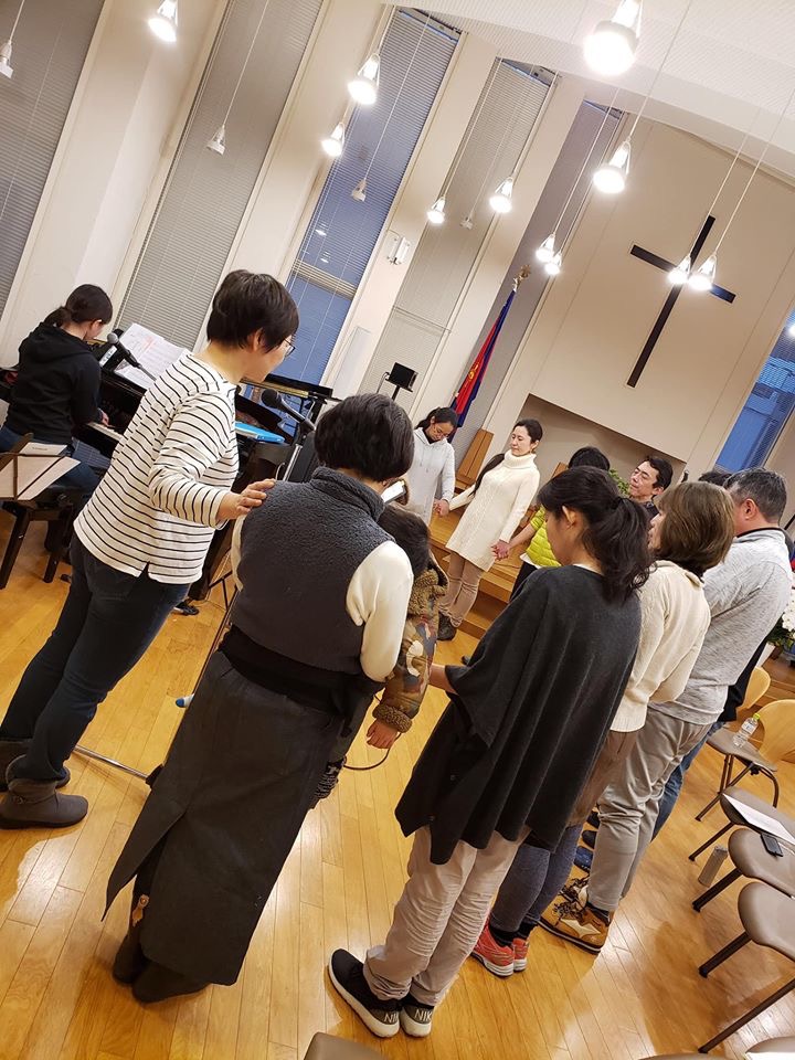 前回リハに続き、来週土曜日2/16のGospel Praiseで歌う「主の愛に包まれ」を練習。